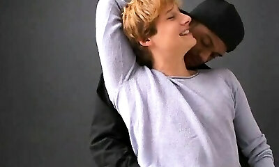 Unexperienced twink Bruce receives a long black cock in his ass