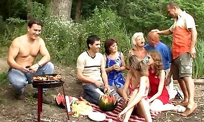 Nasty Dominika and her girlfriends poked hard in group fuck in the forest